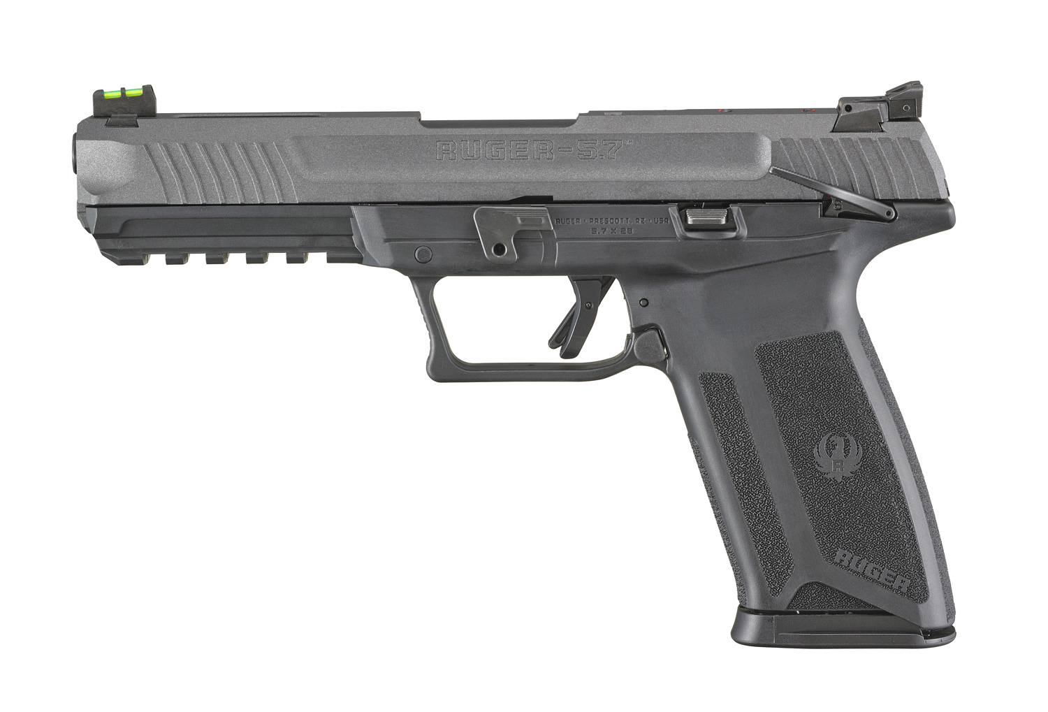 - Through hardened, billet steel slide with lightening cuts is drilled and tapped for easy mounting of optics with separately available optic adapter plate, available at ShopRuger.com.