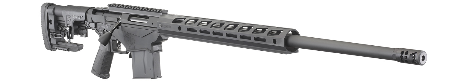 - Heavy-contour (.840″ at the muzzle) barrel features a Ruger Precision Rifle Hybrid Muzzle Brake to effectively reduce recoil while minimizing noise and blast to the sides of the shooter.