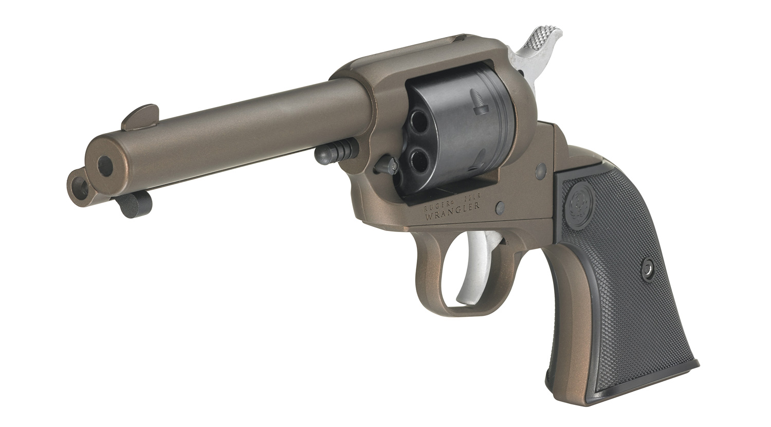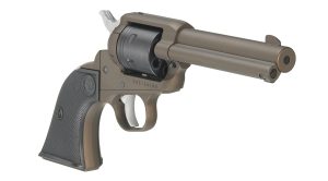 - Checkered synthetic grips on a Single-Six® pattern grip frame.